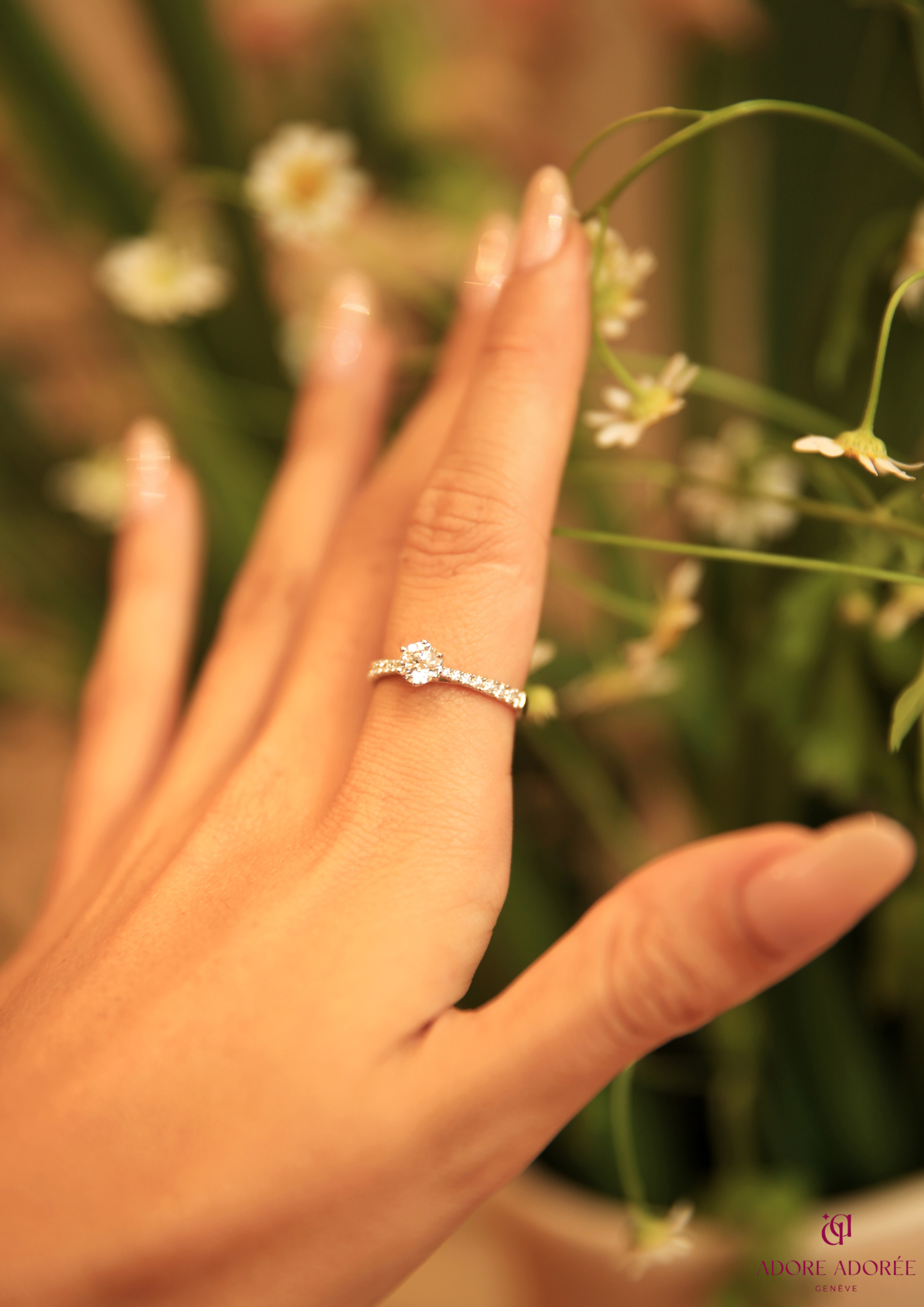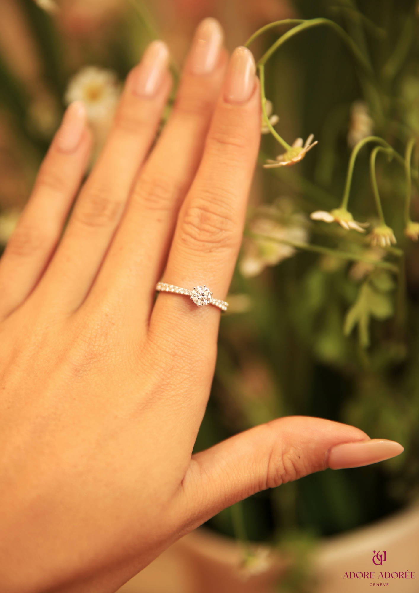 The Together ring by Adore Adorée Genève is a radiant symbol of unity and devotion. Handcrafted in 18k white gold, it features a brilliant 0.52 ct natural white diamond (GIA certified, Color D, Clarity VS2), perfectly complemented by a 0.28 ct diamond-encrusted band that enhances its brilliance from every angle.