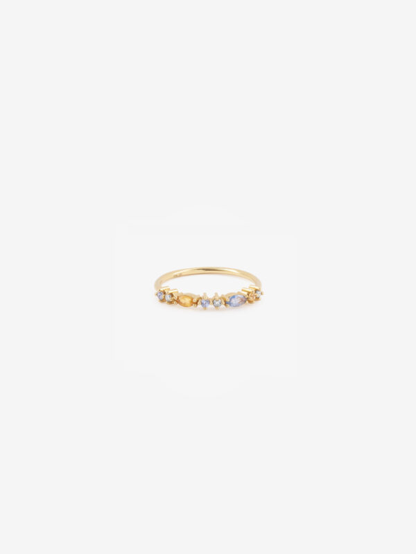 Minimalist yet full of presence, the Bands Ring by Coralie Van Caloen showcases a 3.46 carat aquamarine, a stone prized for its crystal-clear hue and tranquil energy. The architectural setting, composed of fluid 18k yellow gold bands, frames the gem with modern elegance. Light, structured, and effortlessly refined, this ring is a subtle statement of calm strength and contemporary femininity.