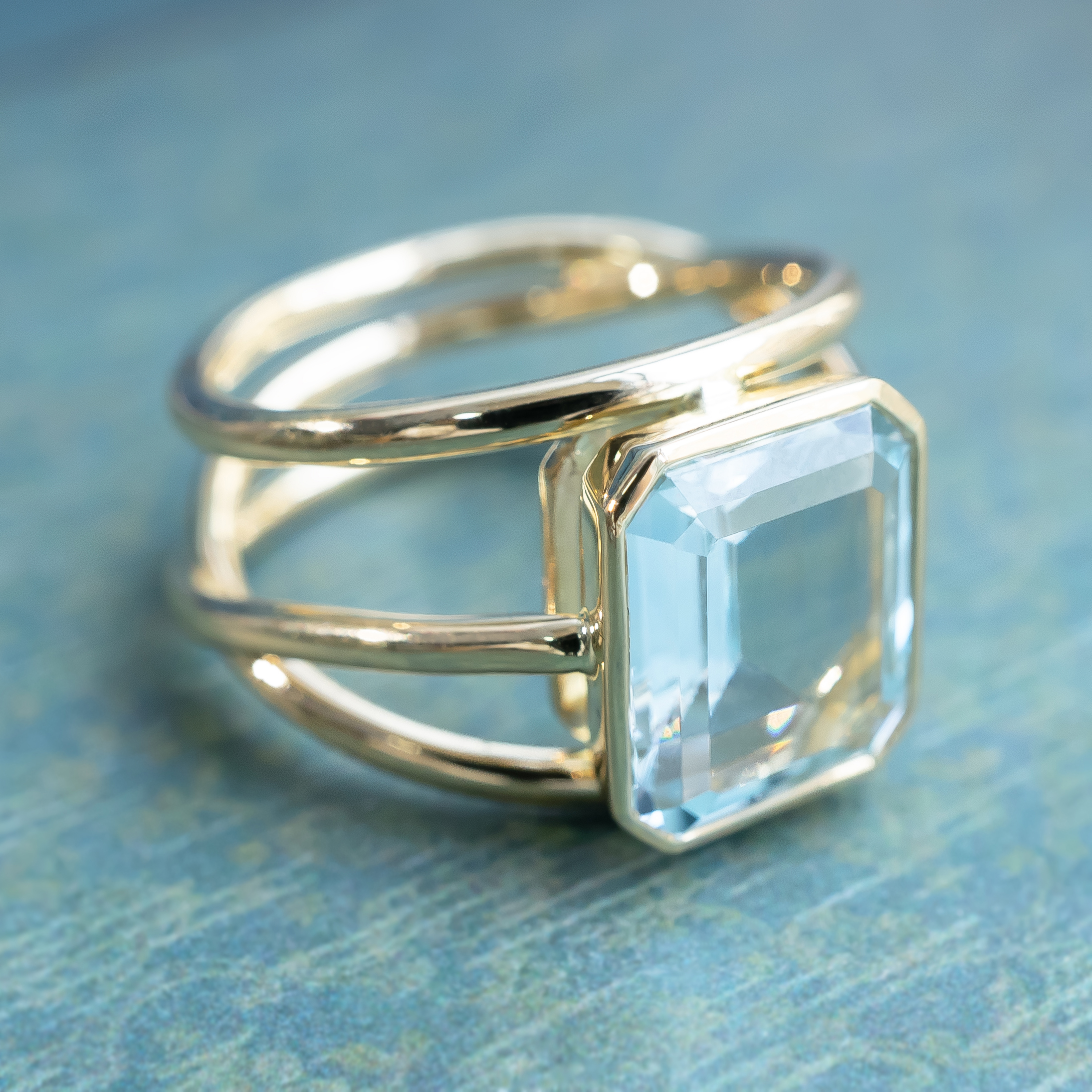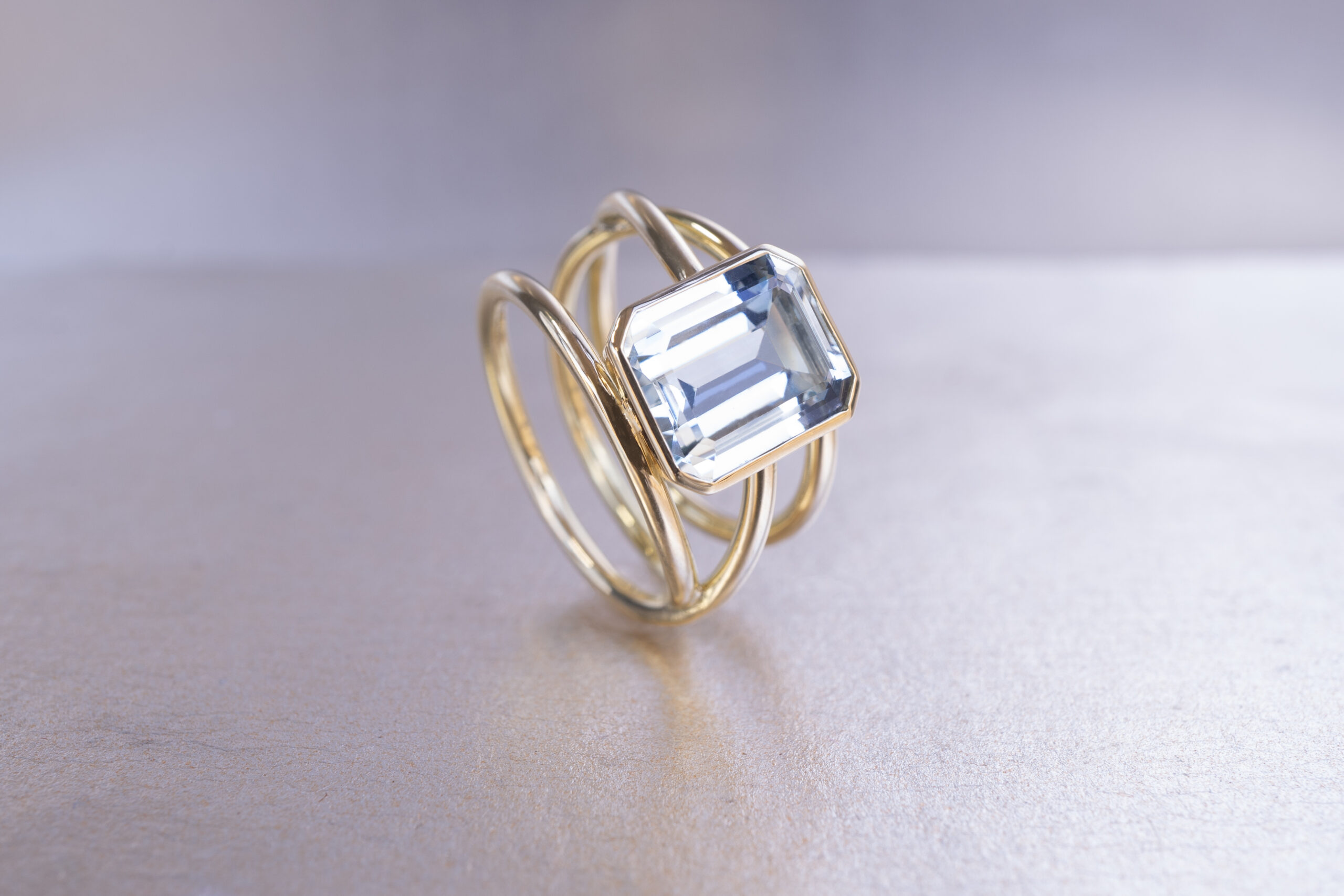 Coralie van Caloen 3 Cordes natural aquamarine 18k yellow gold ring