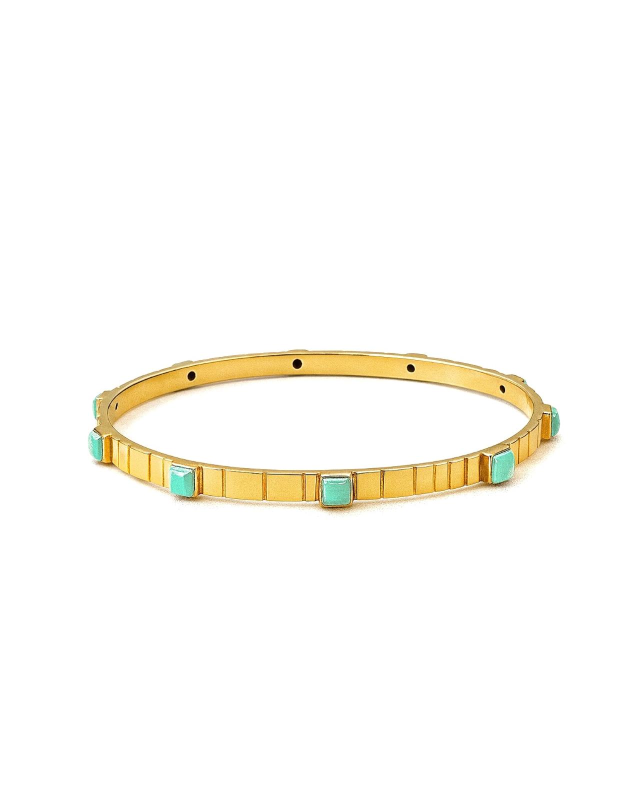 Christine Bekaert Aurea bracelet with bezel set green chrysoprase cabochon in 18k gold plated brass