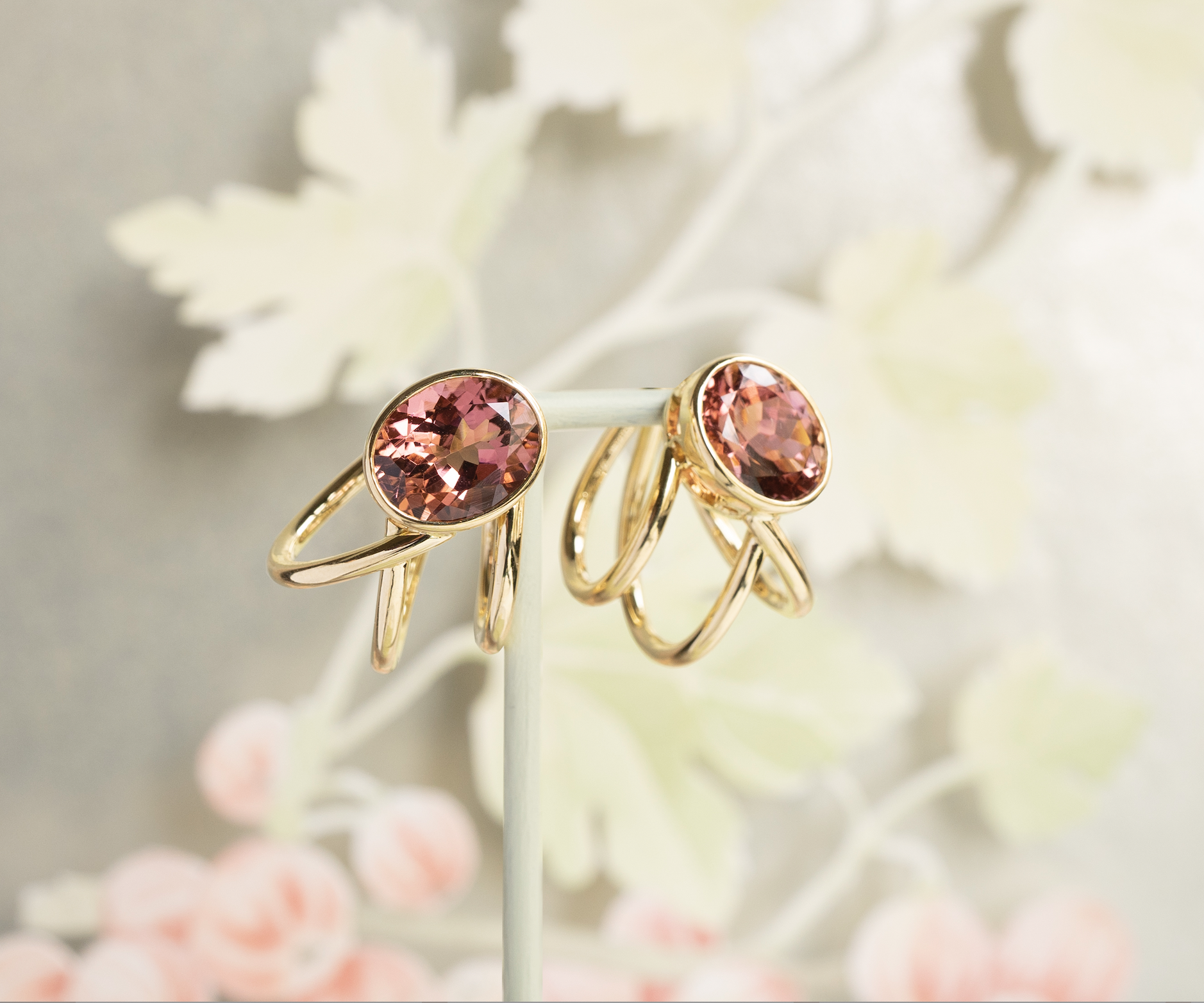 Coralie van Caloen pink tourmaline Sweet Cordes 18k yellow gold earrings