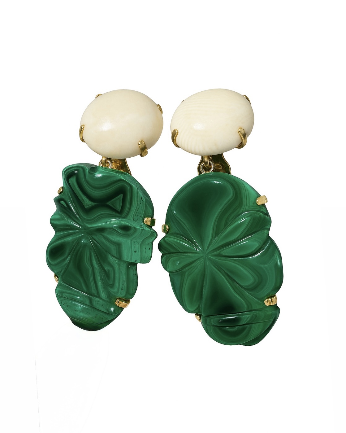 Fonsi Roma 18k gold plated silver resin post top and malachite drop earrrings