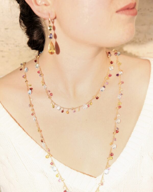 Cool-Toned Cluster Earrings Peridot Drop with Sapphire briolettes and gold filled beads
