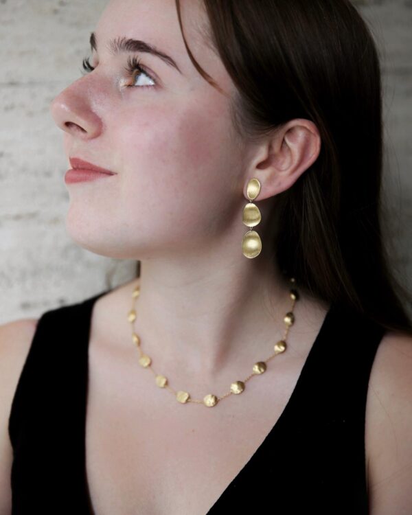 From the Lunaria collection by Marco Bicego, this 18k yellow gold bangle embodies the natural grace of its namesake flower. Each petal-like element is meticulously handcrafted in Italy, its surface delicately brushed to a satin sheen and edged with polished contours that catch the light with subtle brilliance.