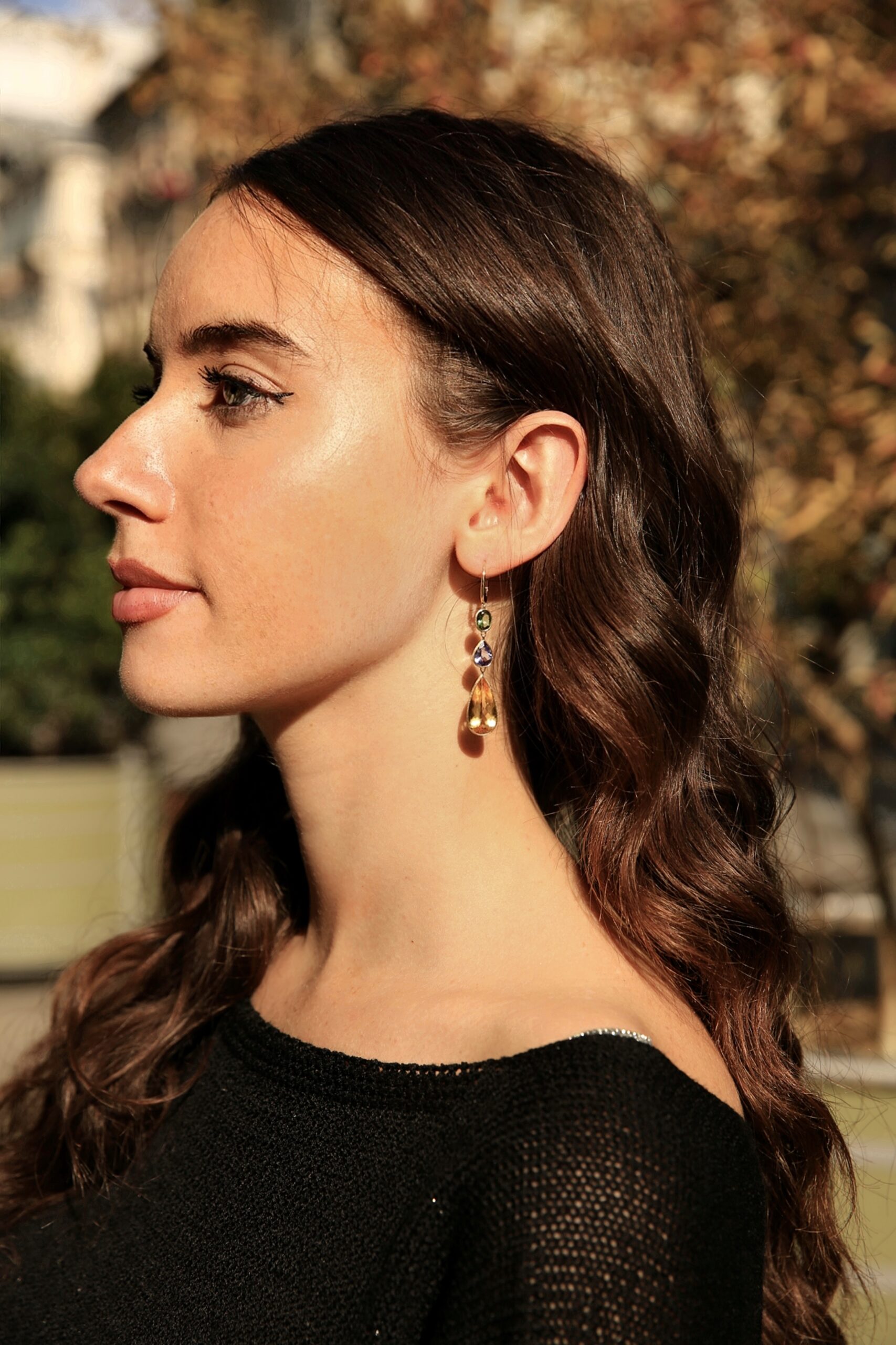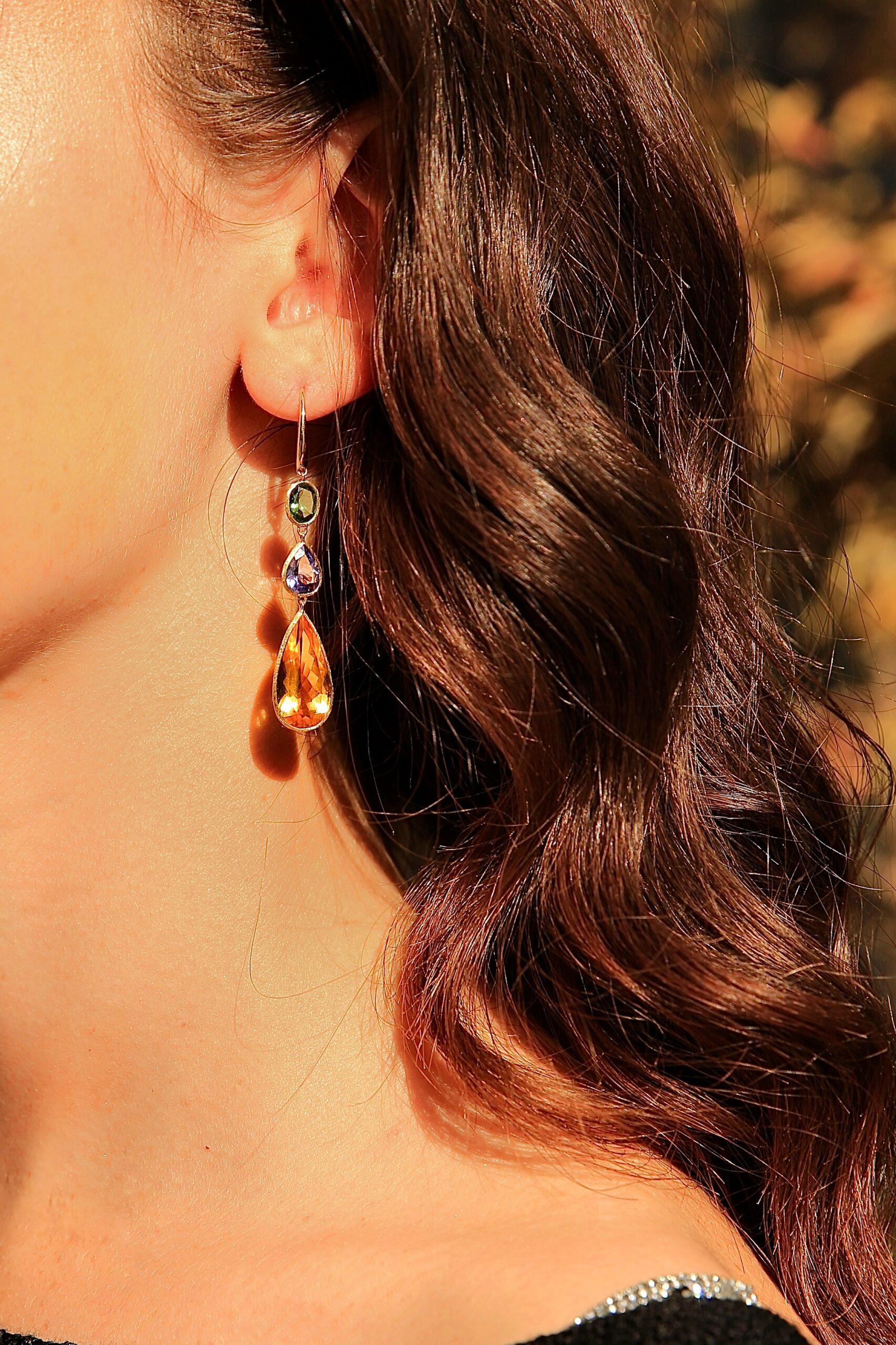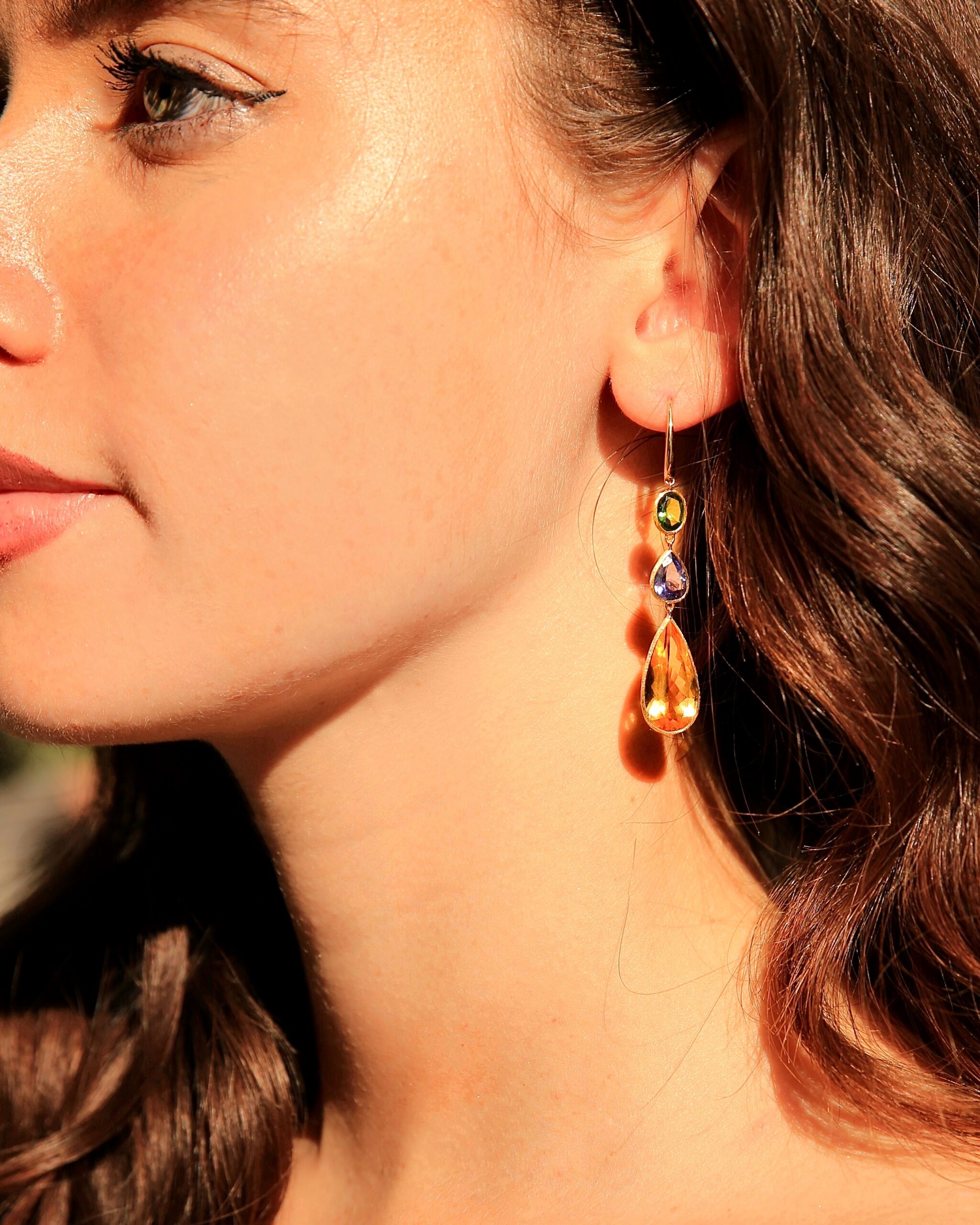 Unico Collection Earrings โ 18k Yellow Gold with Beryl, Tanzanite & Tourmalines (15.74 ct)
