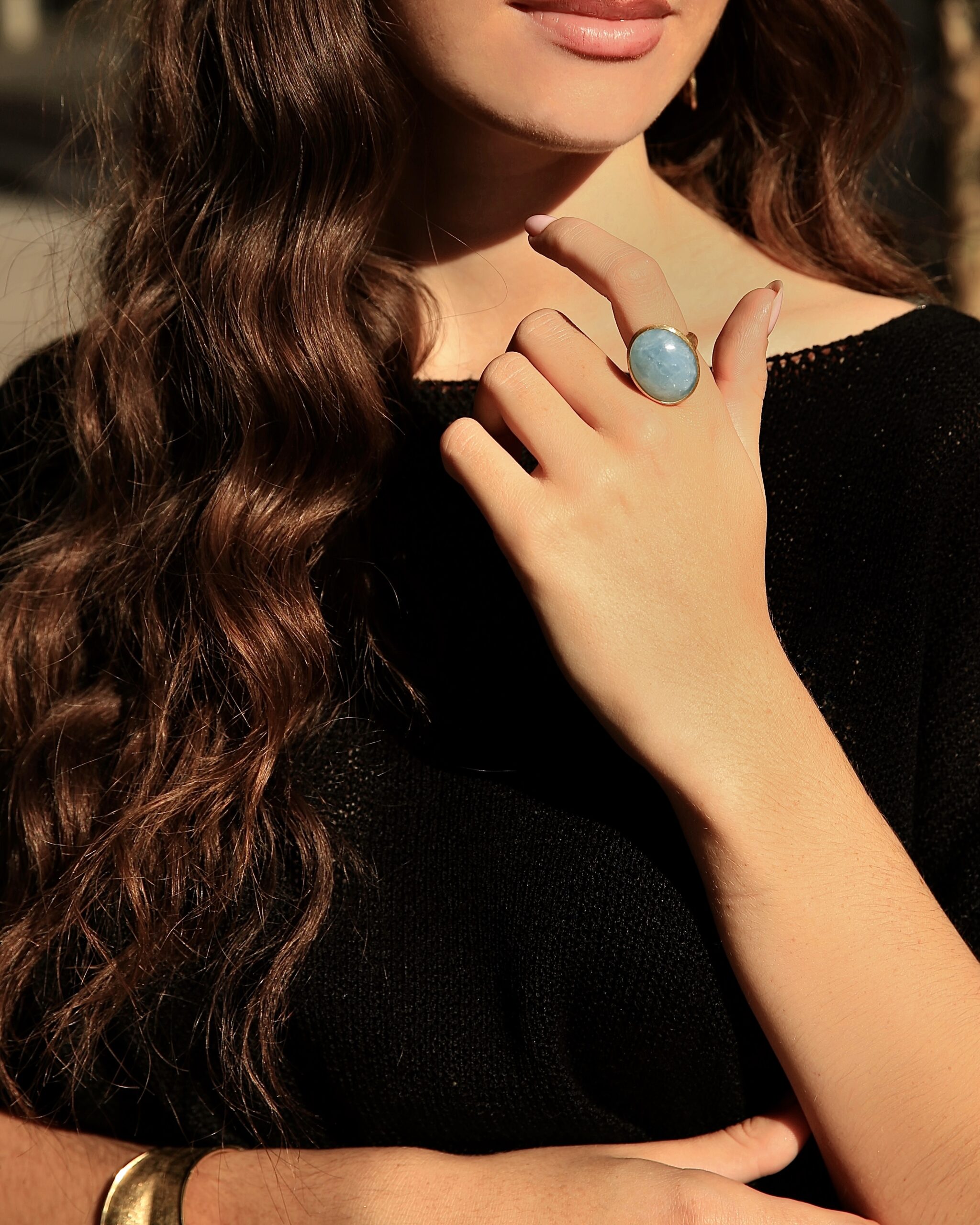 The bold cabochon is embraced by a refined yellow gold setting, creating a jewel that celebrates individuality and timeless elegance, designed to be treasured for generations.