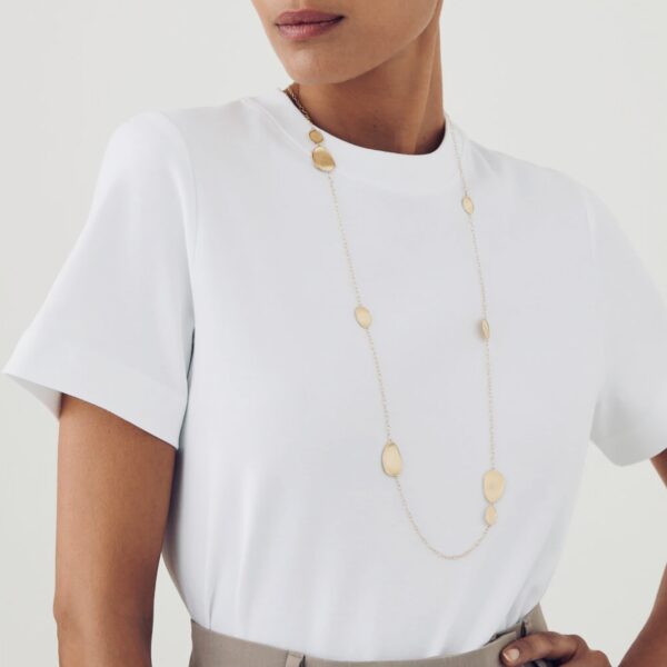 Lunaria collection ring with pavé diamonds set in 18k white gold with an 18k yellow gold band. Size 55. Size adjustable.