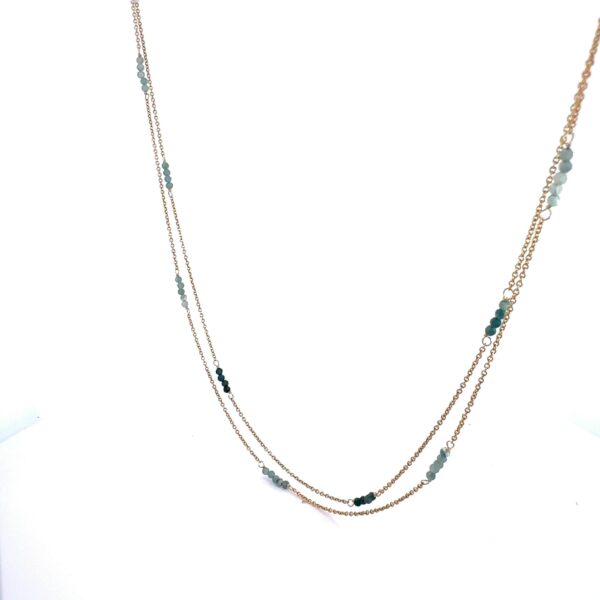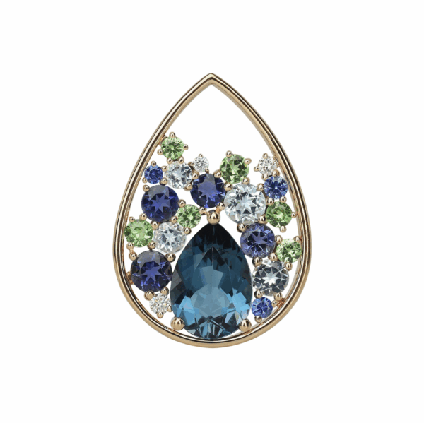 22 gemstones: 8 black diamonds, 9 emeralds (5 marquise-cut), 5 yellow sapphires
